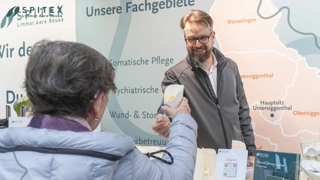 Der persönliche Austausch mit den Besucherinnen und Besuchern stand dabei im Mittelpunkt: In zahlreichen Gesprächen konnten wir unsere Arbeit näher vorstellen, Fragen beantworten und wertvolle Begegnungen erleben. Das grosse Interesse an unserer Spitex-Leistung hat uns sehr gefreut und einmal mehr gezeigt, wie wichtig solche lokalen Veranstaltungen für den direkten Dialog sind.